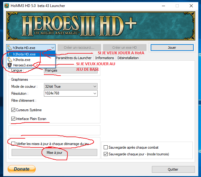 Ne pas faire de Mise à Jour de HOMM3 HD+ si vous souhaitez conserver une VF intégrale.
