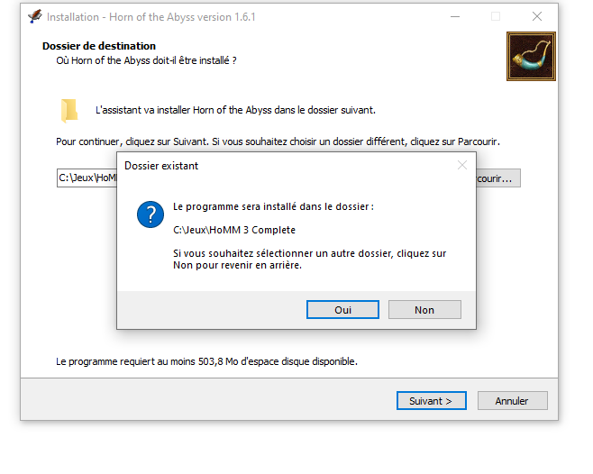 Installation d'HotA - Version Complète jouable (516 Mo) :