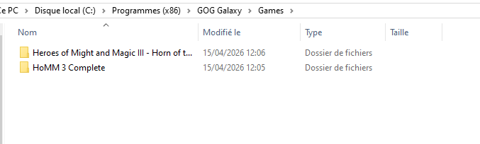 C:\Program Files(x86)\3DO\Heroes3, pour ceux qui possèdent la VF d'origine, ou C:\Program Files(x86)\GOG.com\Heroes of Might and Magic 3 Complete, par exemple, pour ceux qui ont le jeu en anglais, ou encore C:\Games\Heroes3_HotA, pour installer une version complète jouable, soit dans le dossier de votre choix.